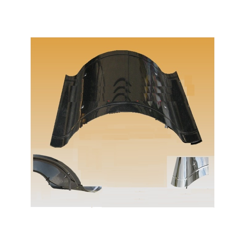 Komínová stříška pro jednoprůduchové komíny. Slouží k zakrytí komínového průduchu před dešťovou vodou a sněhem. Upevňuje se na komínovou desku pomocí vrutů, nebo závitové tyče a chemicke kotvy. Rozměr stříšky je 85 x 50 cm - bez nožiček.