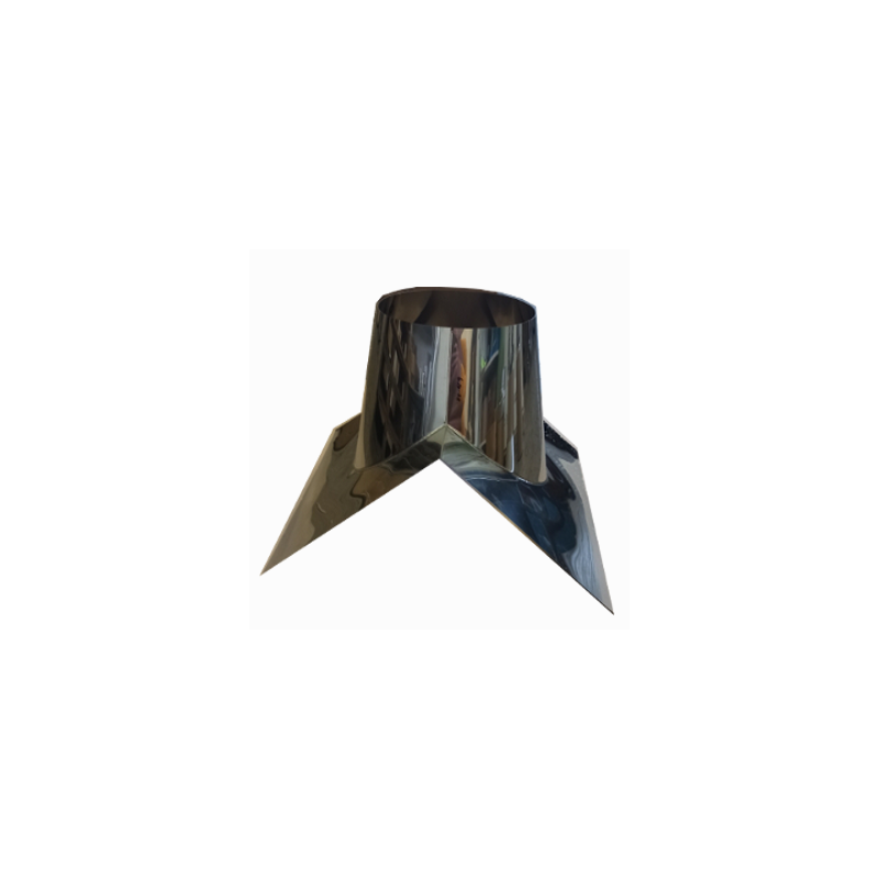 Lemování na nerezový izolovaný komín. Díl vyrobený znerezového plechu. Používá se jako lemování kolem nerezového komína při přechodu střechou, podletypu střešní krytiny je možné si vybrat tu správnou variantu.
