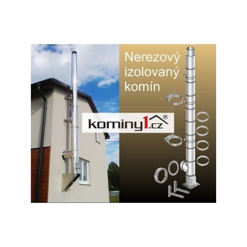 Nerezový komín s tloušťkou vnitřní vložky 1,0 mm a tloušťkou izolace 25 mm, je vhodný pro pevná paliva - dřevo a uhlí. Jakost vnitřní vložky 1.4404. Izolovaný komín vhodný k umístění na fasádu, výhodou je nízká hmotnost a snadná montáž. Kompletní nerezový izolovaný systém pro odvod spalin. Sada obsahuje všechny potřebné díly pro motnáž.